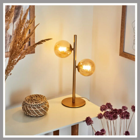 ALDEN asztali lámpa arany 195324Díszítse otthonát ezzel a dekoratív lámpával, mely egyaránt megállja a helyét nappaliban vagy hálószobában is. Különleges dizájnja egyedivé varázsol bármilyen helyiséget.Méret: hossz 35 x szélesség 15 x magasság 48 cmSzín: aranyAnyag: fém, lámpabúra anyaga: üveg- IP20 szabvány - 40W- retro dizájn