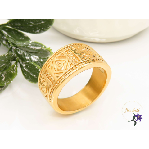 Antiallergén nemesacél metszett díszítésű széles gyűrű Szin: 18K Szélessége: 12x11x2mm