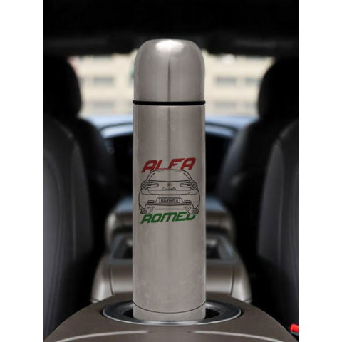 Alfa Romeo termosz, Giulietta termosz. Autós termosz alfásoknak. A termosz 500ml-es és 750ml-es méretben rendelhető, Alfa Romeo felirattal és autó mintával készítjük. Anyaga rozsadamentes acél. Stílusos és praktikus rozsdamentes acél termosz, amely ide