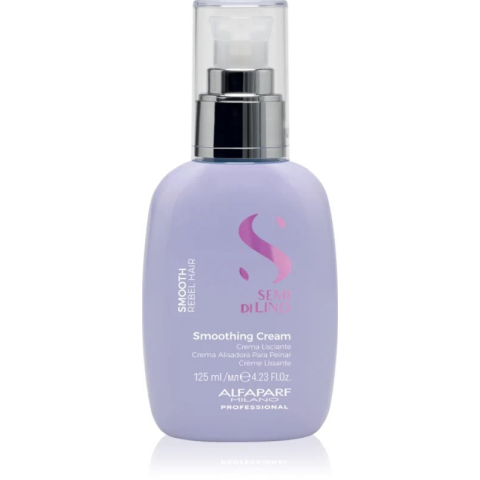 Alfaparf Semi di Lino Smoothing simító krém, 125 ml - Kisimítja a hajat, megszünteti a kócosodást, megkönnyíti a kifésülést - Megszünteti a nedvesség és az atmoszférikus hatások okozta kreppesedést - Megelőzi a haj károsodását a szárítás, vasalás vagy g