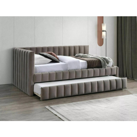 1 kép Alfie Velvet Kihúzható Bársony Ágy Sötétbézs Bordázott Kárpitozással