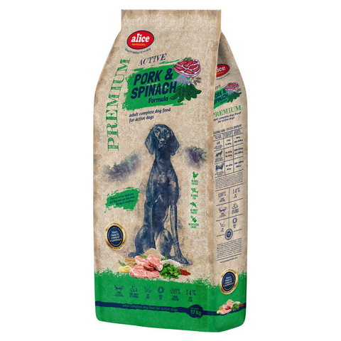 1 kép Alice Adult Active Pork & Spinach 17 kg