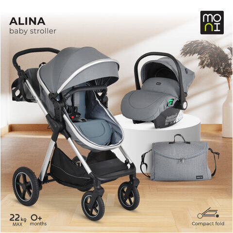 Moni Alina 2in1 Babakocsi Szett: Sokoldalú megoldás a babád kényelméért 👶 A Moni Alina 2in1 babakocsi szett egy átalakítható babakocsi, amely újszülött kortól 4 éves korig (22 kg-ig) használható. A szett tartalmaz egy autós hordozót is, így minden ig...
