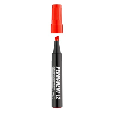 Műanyag, üveg, fém, fa illetve szinte minden felület feliratozására , jelölésére alkalmas, alkoholbázisú festékkel töltött permanent marker. Írásképe száradás után törlés-és vízálló. Vágott csúccsal, klipszes kupakkal. Vonalvastagság: 1-4 mm
