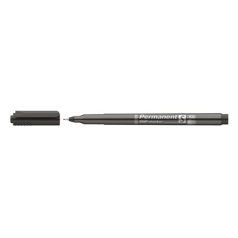 Alkoholos marker ICO OHP S fekete Alkoholbázisú, permanent festékkel töltött marker. Gyorsan száradó, színtartó, írásképe törlés- és vízálló. Műanyag, üveg, fém, fa, stb. szinte minden felület feliratozására, jelölésére alkalmas. Precíziós fémfoglalatú