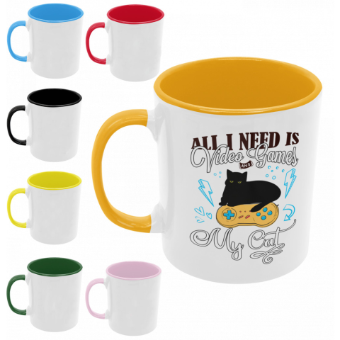 1 kép All I need is Video Games and my Cat - Színes Bögre