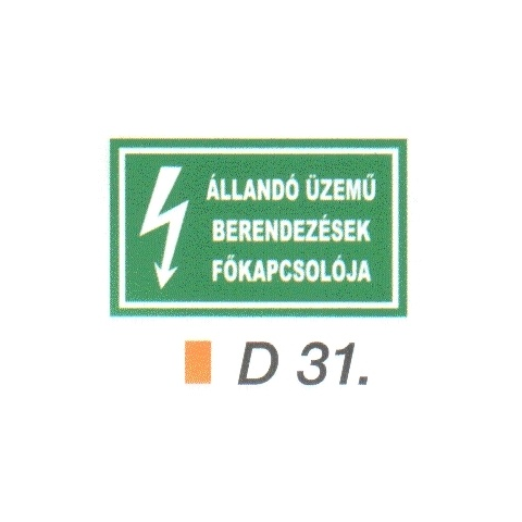 Állandó üzemü berendezések fökapcsolója Cikkszám: D31 Kivitel: Öntapadós Méret: 100x60mm