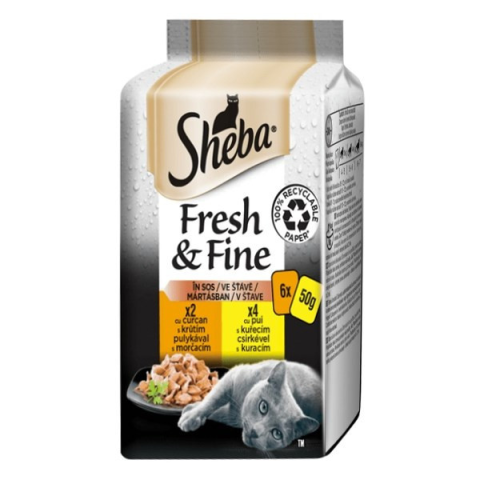 1 kép Állateledel alutasakos SHEBA Mini macskáknak szárnyas csirke-pulyka válogatás 6x50g