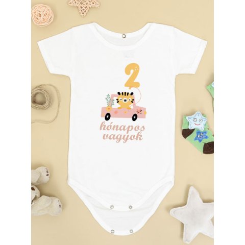 Ez a vagány kis tigris egy pihe-puha autóval száguld a 2 hónapos babák szívébe! A letisztult színek és kedves grafika tökéletesen illik a trendi, natúr stílushoz. A body 100% pamutból készült, rövid ujjú és hátul patentos – így ez a feliratos ajándék nemc