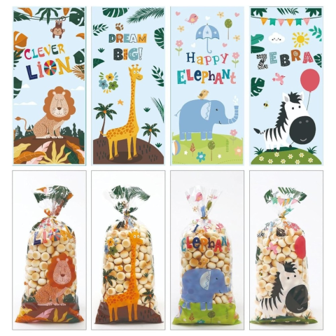 \nDobd fel a gyerekzsúrokat ezzel a vidám állatkertes mintás celofán zacskó szettel! Tökéletes apró ajándékok, sütemények, cukorkák vagy köszönőcsomagok csomagolására – garantáltan mosolyt csal a gyerekek arcára.