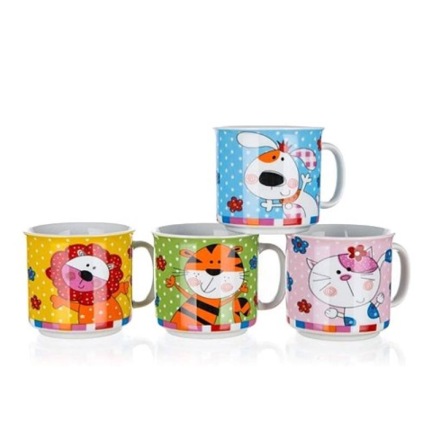 Többféle állatos mintával kapható, a bögre magassága 7,7 cm, átmérője 7 cm.