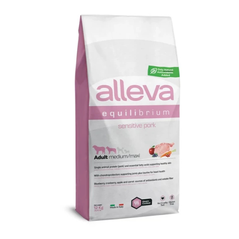Alleva Equilibrium Medium / Maxi Érzékeny Felnőtt Kutyáknak Sertés 12 kg, gluténmentes kutyaeledel termékleírás
