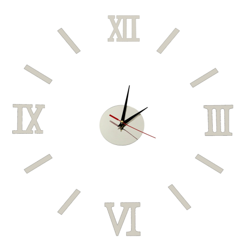 Modern DIY fali órák ezüst római számokkal egyedi karaktert kölcsönöznek belső terének. Az egyszerű összeszerelhetőség és a méret testreszabhatósága miatt ideális választás bármely falra.