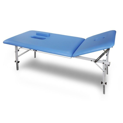 Állítható magasságú, és könnyen összecsukható vizsgálóágy, állítható fejtámlával. Mindössze be kell hajtani a lábait, és már szállítható is. A fejtámláját racsni segítségével állíthatjuk be a kívánt helyzetbe. Felülete porfestett acélváz, nagy színválaszt