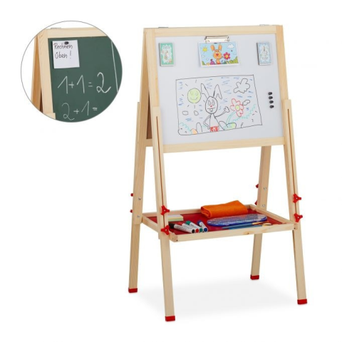 Állítható magasságú szabadonálló rajztábla gyerekeknek Ezzel a kétoldalas, gyermekeknek szánt állódeszkával ösztönözze kicsinyei kreativitását és tanulási hajlandóságát. Állítható magasságú, így pontosan alkalmazkodik gyermeke méretéhez. A gyerektáblán 2