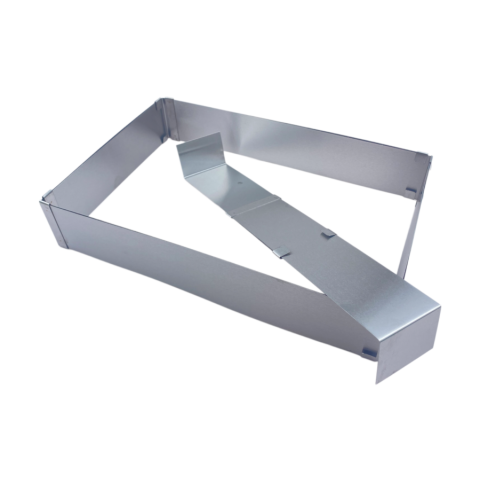 Állítható tortakeret, fém, téglalap; 5 cm magas A téglalap alakú állítható tortakeret kiválóan alkalmas sütemények és torták sütésére, illetve a torták töltésénél és kiszúrásánál is tökéletes társad lehet.A tortakeret fokozatmentesen állítható.A tortak