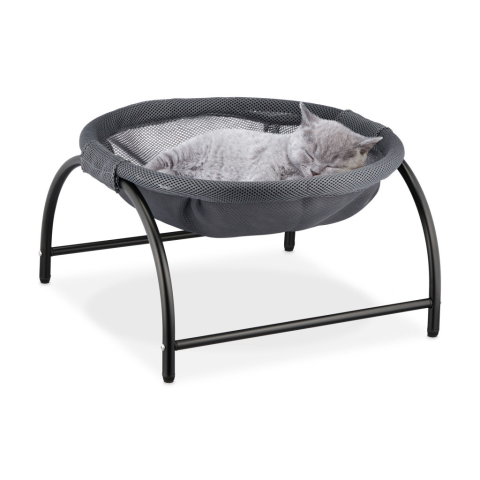 Álló függőágy macskáknak Biztosítson macskájának kényelmes pihenőhelyet ezzel az álló macskafüggőággyal. A robusztus acélváz stabilitást, a kényelmes hálós felület pedig maximális kényelmet biztosít. A modern dizájn sötétszürke fekvőfelülettel és matt fek