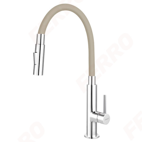 1 kép Álló mosogatócsap elasztikus kifolyóval, Zumba Slim 2F, Bézs, Ferro