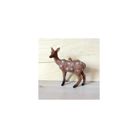 Álló őzikefigura, remek dekorációs elem a polcodon, az asztalodon, koszorún vagy minikertben, tündérkertben. Karácsonyi kompozíciókelengedhetetlen kelléke. Karácsonyfára is felakasztható.