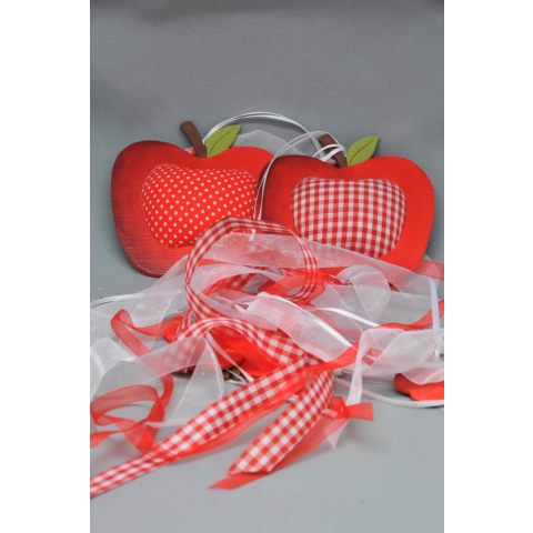 Alma ajtódísz akasztós fa-textil 75cm piros-fehér 2 féle