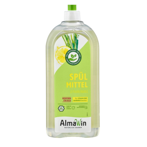 Almawin kézi mosogatószer citromfűvel, 1 l - Természetes eredetű, vegán kézi mosogatószer friss citromfű illattal - Ecogarantie ökocímkével tanúsított mosogatószer - Hatékonyan tisztít, miközben kíméli a bőrt és környezetbarát megoldást kínál a mindenna