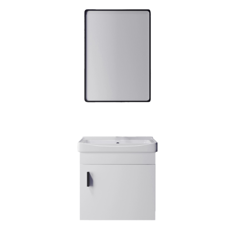 1 kép ALPHA fekete/fehér függesztett fürdőszobai bútorszett tükörrel