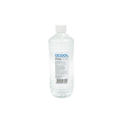 Kifejezetten az Alphacool számára közvetlenül egy kiváló minőségű fordított ozmózisos rendszerből előállított víz. Az 5 speciális szűrővel (amelyek közül az egyik egy speciális fordított ozmózisszűrő) megtisztított víz teljesen mentes a sótól és fémektől, azaz a normál csapvízben található összes összetevőtől. Az eljárás eltávolítja a klórt, a szagokat, az olyan nehézfémeket, mint az ólom, a réz, a kadmium, a higany stb. Az eljárás eltávolítj