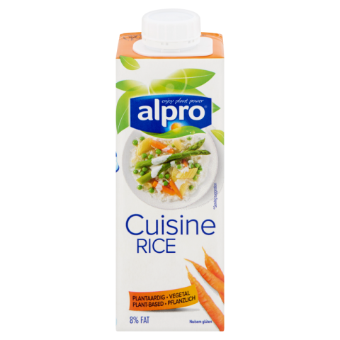 Az Alpro rizs főzőkrém 100%-osan növényi alapú és laktózmentes.