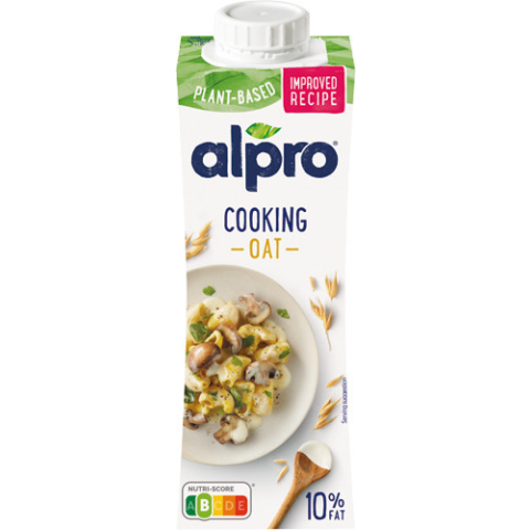 Az Alpro Zab Főzőkrém UHT (250 ml) növényi alapú, laktózmentes és vegán tejszínalternatíva. Krémes, lágy ízű zabkrém szószokhoz, levesekhez és tésztákhoz – egészséges, természetes megoldás főzéshez.