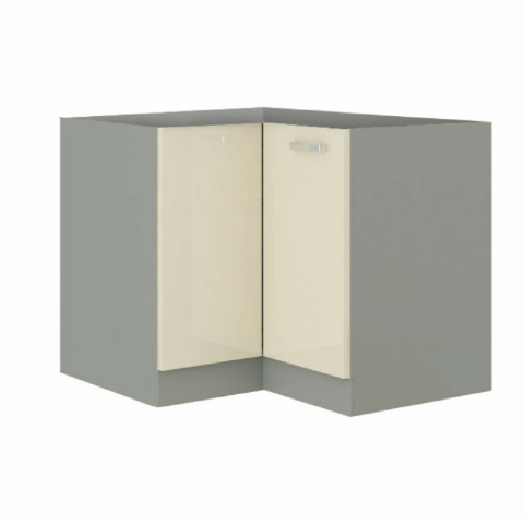Alsó sarokszekrény, szürke/krém extra magasfényű, PRADO 90/90 DN ZB bútor termékleírás