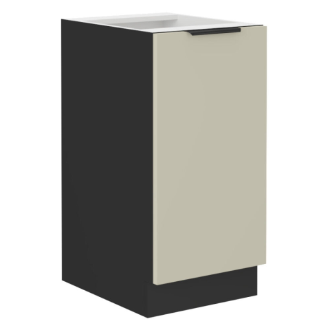 ARAKA 40 D 1F BB Kasmír/Fekete Alsó Szekrény - Modern stílus és praktikus tárolás 🖤 Az ARAKA alsó szekrény tökéletes választás konyhádba, ha modern megjelenést és praktikus tárolási megoldást keresel. A kasmír színű ajtók és a fekete matt korpusz ele...
