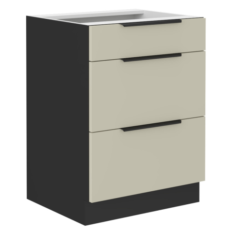 ARAKA 60 D 3S BB Kasmír/Fekete Alsó Szekrény - Modern stílus és praktikus tárolás 🧽 Az ARAKA alsó szekrény tökéletes választás konyhádba, ha modern megjelenést és praktikus tárolási megoldást keresel. A kasmír színű ajtók és a fekete matt korpusz ele...