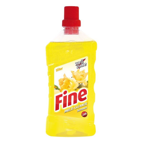 Általános tisztítószer WELL DONE Fine Multi Cleaner Summer 1L Friss illatú, koncentrált tisztítószer, mely felületaktív anyagtartalma miatt kiválóan alaklmas padlófelületek, bútorok, szaniter elemek, ablak stb. tisztítására. Kiszerelés: 1000 ml.