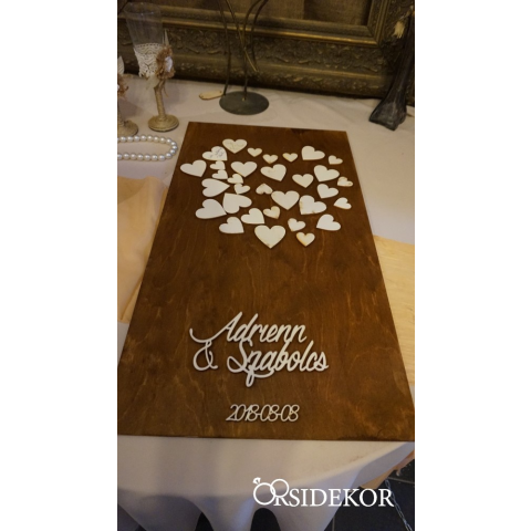 Az alternatív vendégkönyv 2 féle méretben rendelhető Az alap egy pácolt 6mm vastag fa lap, amire lehet írni lakk filccel vagy bármilyen írószerrel. Az alternatív vendégkönyvre az esküvő vendégei írhatják jókívánságukat vagy csak aláírhatják, később egy ö