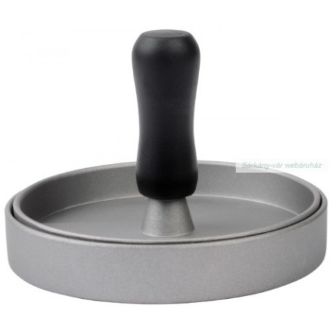 Alumínium hamburger húspogácsa nyomó:tapadásmentes bevonattal Mérete: 12x8 cm Rendelésre: 5-10 nap! Szín: ezüst, fekete Nettó súly: 0,275 Anyag: Alumínium / Polipropilén
