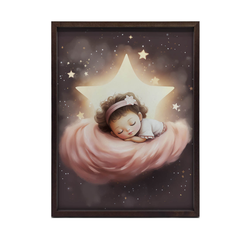 Álomország Kislány - Faliplakát: Bűvös dekoráció gyerekszobába ✨ Ez a gyönyörű faliplakát Marcin Zbijowski művészeti alkotása, mely egy álomszerű világot varázsol a gyerekszobába. A kislány egy felhőn alszik, csillagok veszik körül, egy igazán mesesz...