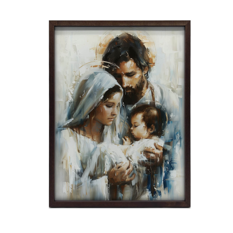 Szent Család faliplakát: Karácsonyi hangulat a nappaliban 🎄 Hozza el a karácsony meghitt varázsát otthonába ezzel a gyönyörű Szent Család faliplakáttal! A 60x90 cm-es, matt felületű, 230 gsm-es papírra nyomtatott kép egy elegáns, fekete alumínium ke...