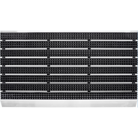A lábtörlő alumínium sínnel rendelkezik, és kültéri használatra alkalmas. Ezenkívül a sörtéknek köszönhetően erős dörzsölő hatást biztosít. A felső anyag 100% polipropilénből készült, csúszásmentes, stabilizált hátoldallal.