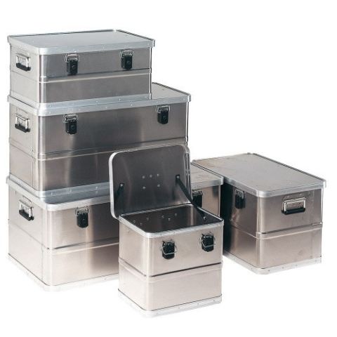 Alumínium láda 140 l 4287 Belső méretei (h x sz x m): 850x440x345 mm Külsp méretei (h x sz x m): 870x490x375 mm Űrtartalma: 140 l Teherbírása 100 kg - Könnyű ládák, kiváló minőséggel. - A ládák alumínium ötvözetből készülnek. - Plombázhatók, illetve l