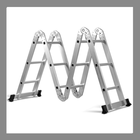 Alumínium Létra 4x4 EN131-A termék súlya: 11,3kg·Többcélú funkció·Biztonság - Állítható reteszelés 6 csuklóval a hajtogatható rész rögzítéséhez / kinyitásáhozKözepes igénybevételű és hosszabb ideig tartKiváló minőségű alumínium anyagAlumínium ötvözetből készült szerkezet a korrózióvédelem érdekébenKönnyű és könnyen tárolható -max150kg