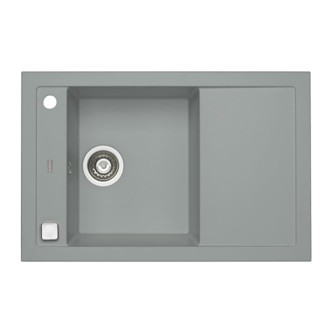 Gránit mosogató lecsepegtetővel, Beton 81 kivitel, forgatható, méret 760 x 500 mm, medence 347 x 420 x 200 mm, felső vagy alsó szerelés, legalább 50 cm-es szekrény, excenteres, 2 gyári furattal.