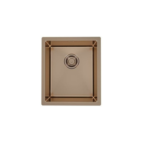 Rozsdamentes acél mosogató, lemezvastagság 1 mm, PVD réz kivitel, méret 390 x 450 mm, medence 340 x 400 x 200 mm, felső/oldalsó/alsó szerelés, legalább 40 cm-es szekrény.