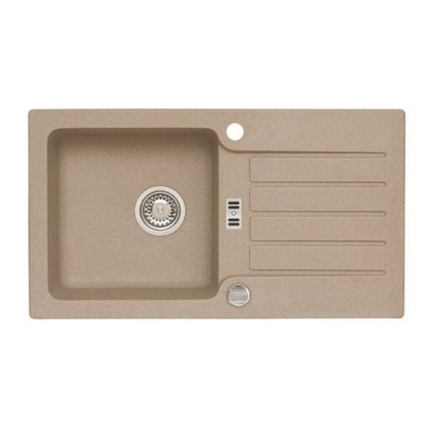 Alveus Niagara 30 Beige 55 (1076857) gránit mosogató lecsepegtetővel, méretek 770 × 430 mm, anyag Granital, szín árnyalat homok („Beige 55”). Egyszerű felső szerelés, alkalmas kb. 50-60 cm-es szekrényhez. Robusztus, hő-, karcolás- és a szokásos konyhai igénybevételeknek ellenálló.