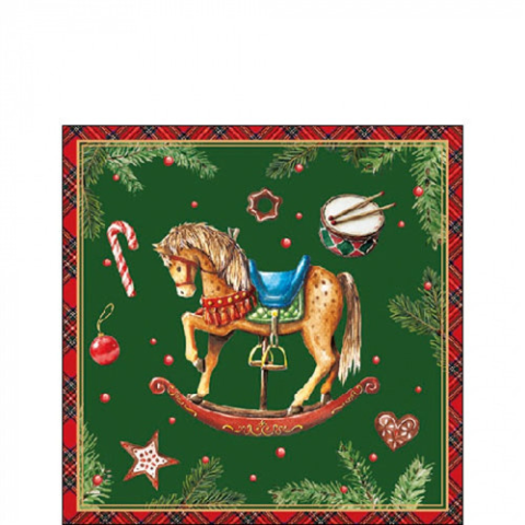 AMB.32520041 Classic rocking horse green papírszalvéta 25x25cm, 20db-os