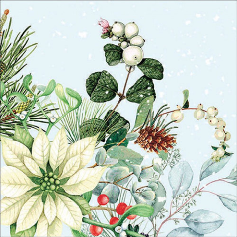 A(z) White poinsettia papírszalvéta 33x33cm, 20db-os egy stílusos és igényes darab papír anyagból készült , mérete: Kiterítve 33x33cm . A termék a(z) Ambiente márka kínálatából származik , eredeti származási helye: Hollandia.