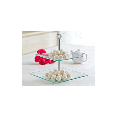 Ambition Laura Kínáló tálca 2 emeletes szögletes üveg 62071 - Anyaga: üveg + avcél + mûanyag - Mérete: 24 * 24 * 29 cm magas - Szintek mérete: - 1 szint: 19,5 * 19,5 cm - 2 szint 24 * 24 cm