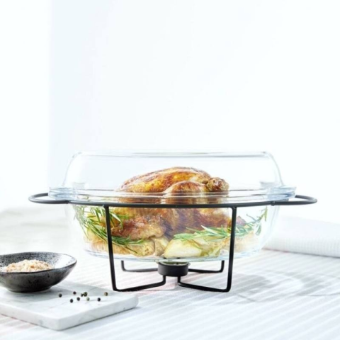Melegen tartó + állvány 4.5 liter ( 2.osztályú termék, a jénai tál tartó állányon/rácson szépséghibák/anyaghibák találhatóak )