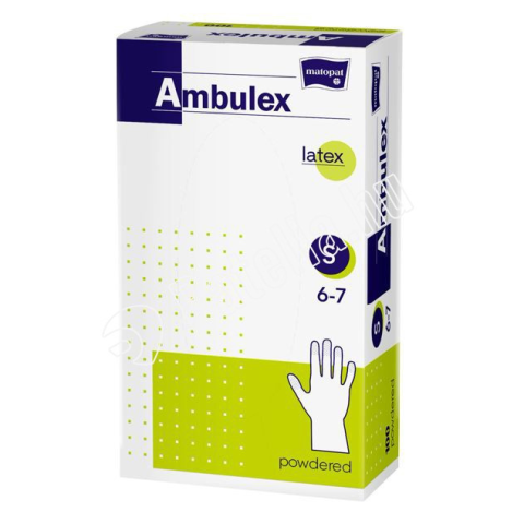 Ambulex Latex egyszer használatos vizsgálókesztyű. Sima felületű,eldobható,természetes latexből készült enyhén előpúderezett természetes kukoricakeményítővel. Univerzális forma mindkét kézre illeszkedik. .