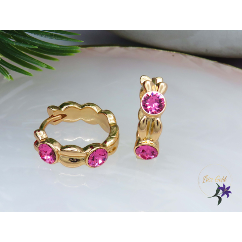 1 kép Amélia pink kristályköves karika fülbevaló-18K