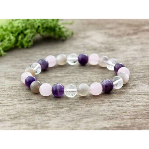 Ametiszt rózsakvarc hegyikristály és holdkő ásvány karkötő